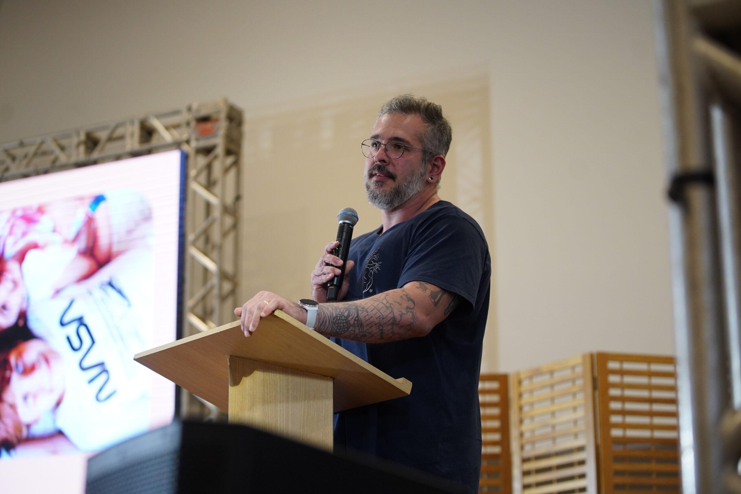 Durante a palestra, o escritor compartilhou reflexões sobre os desafios da parentalidade, a importância da escuta ativa e a construção de vínculos afetivos seguros com os filhos, especialmente em tempos de sobrecarga emocional e transformações sociais.