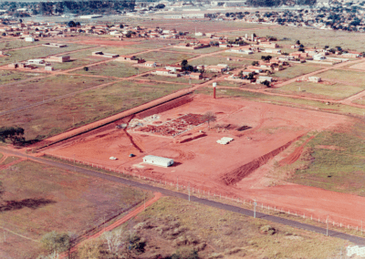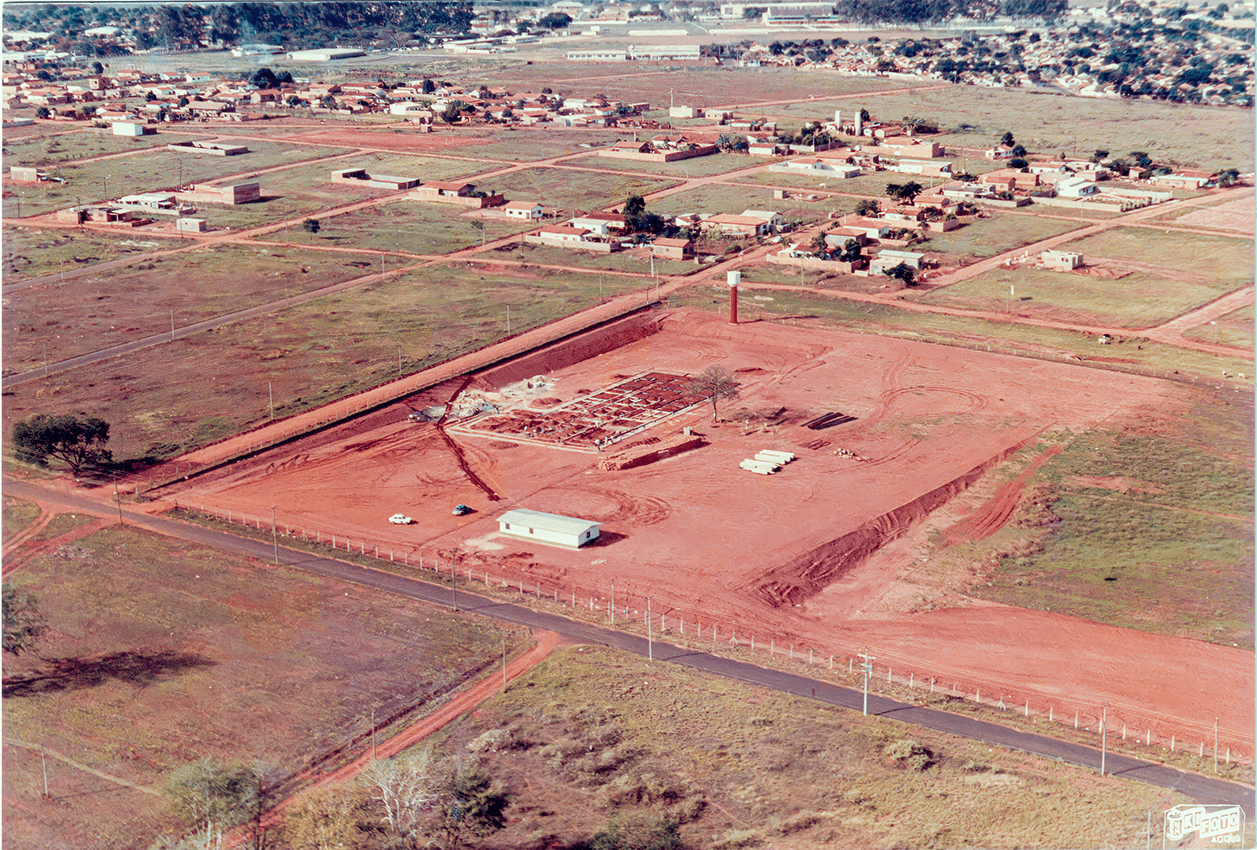 Início da construção do complexo hospitalar que hoje abriga o Hospital de Amor, no início da década de 1990. À época, divulgava-se a construção do novo Hospital de Câncer no bairro Campo