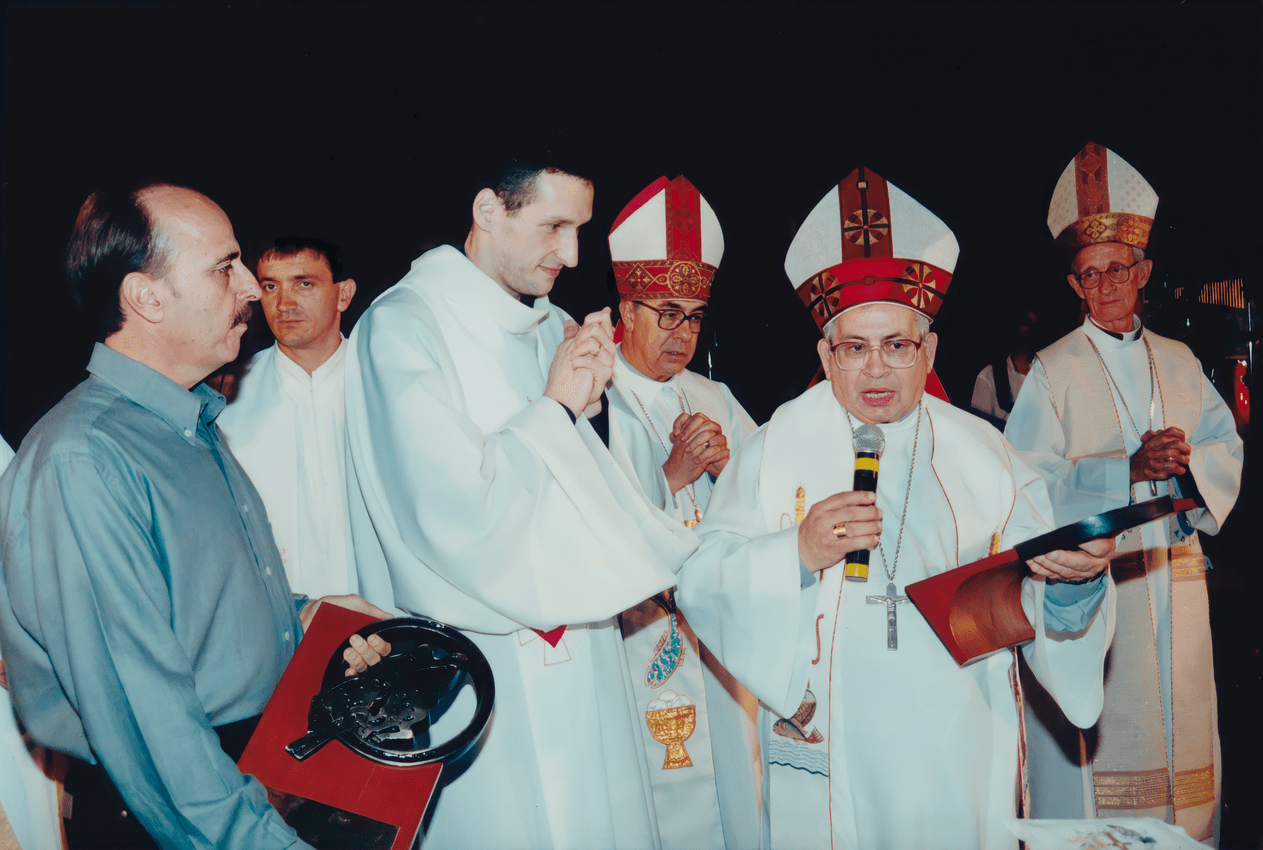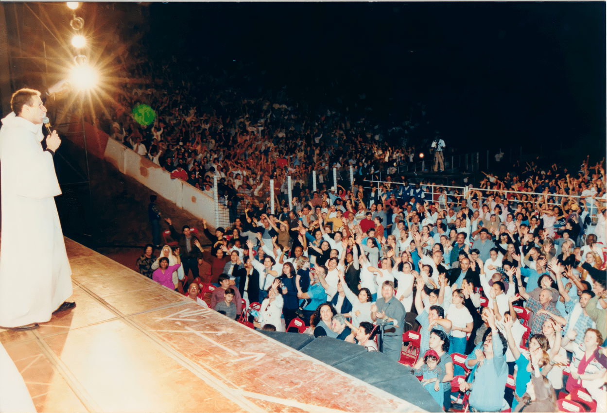 Padre Nazareno, do movimento sacerdotal Mariano, em visita à Cidade de Maria, em Barretos, em maio de 1993.