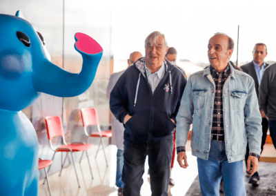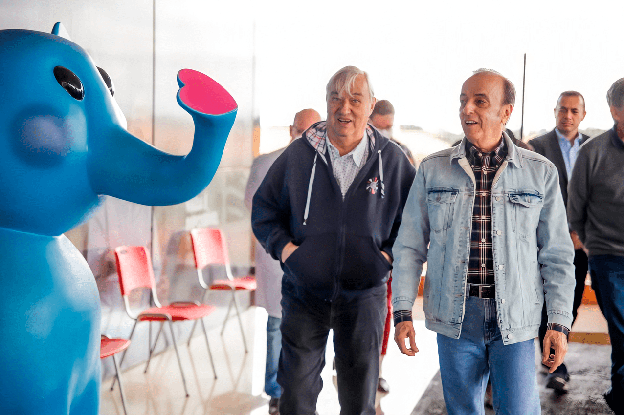 Frei Hans Stapel, fundador da fazenda Boa Esperança, em visita ao Hospital de Amor junto ao presidente Henrique Prata.