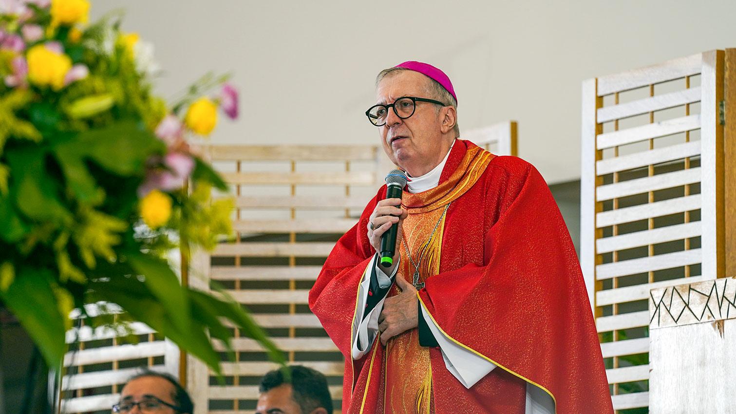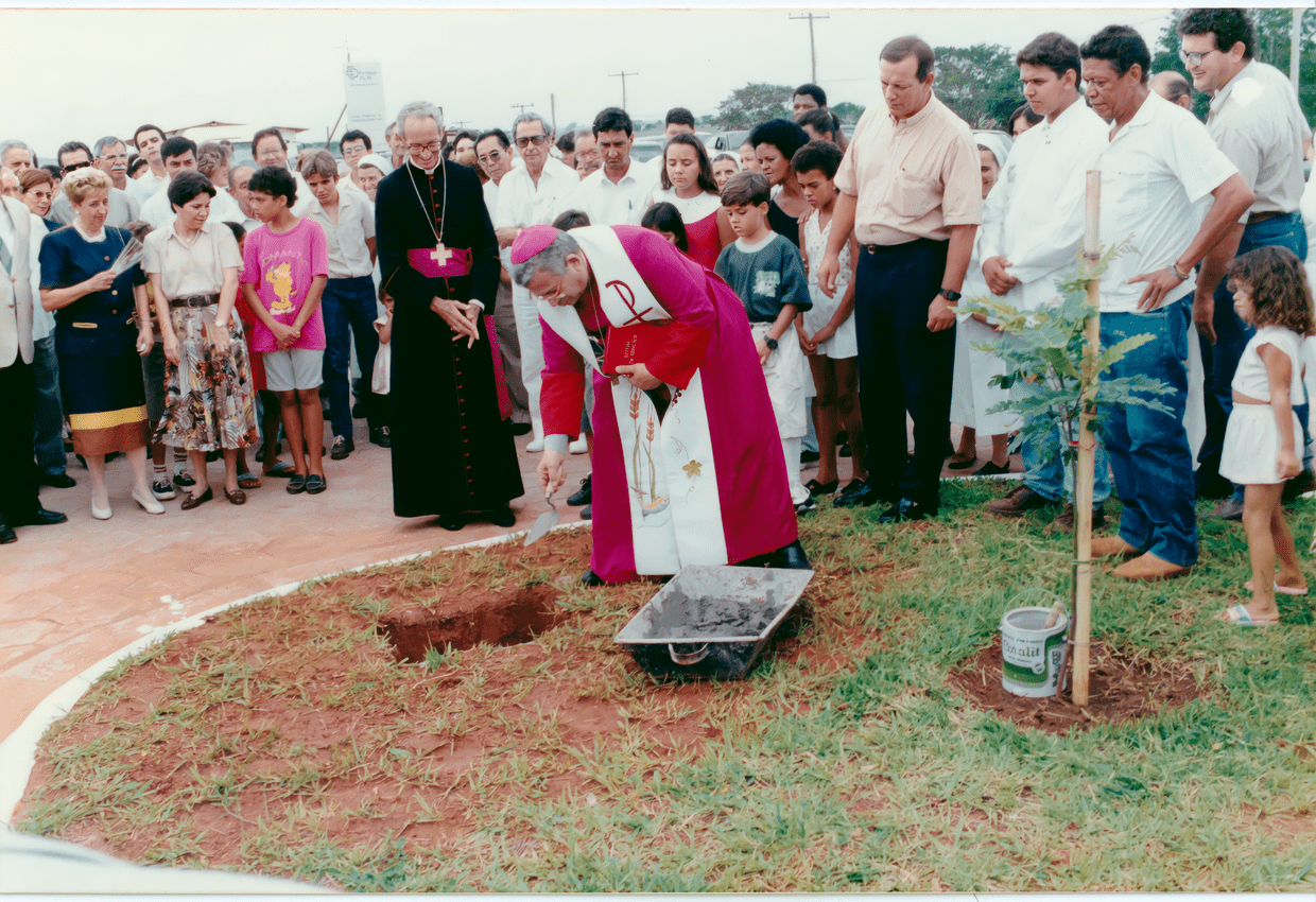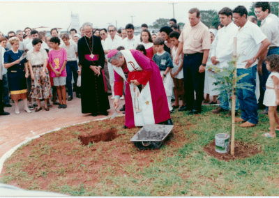 Dom Pedro Fré e Dom Antonio Mucciollo, que foram bispos da diocese de Barretos, presentes na inauguração do pavilhão Antenor Duarte Vilella, em 1991.