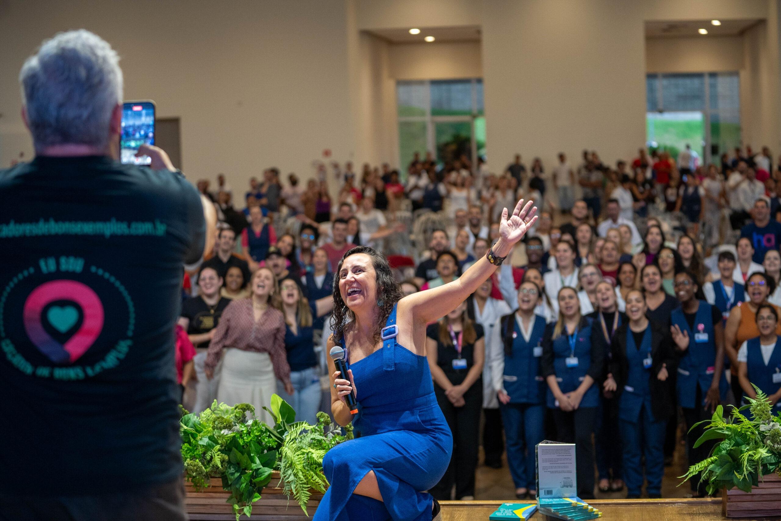 A palestra que reuniu mais de 400 colaboradores da instituição e foi realizada na 7ª edição do Cuidando de Quem Cuida, foi cheia de motivação e humanização. Em um bate-papo animado, o casal reforçou a importância do trabalho dos profissionais que atuam no Hospital de Amor.